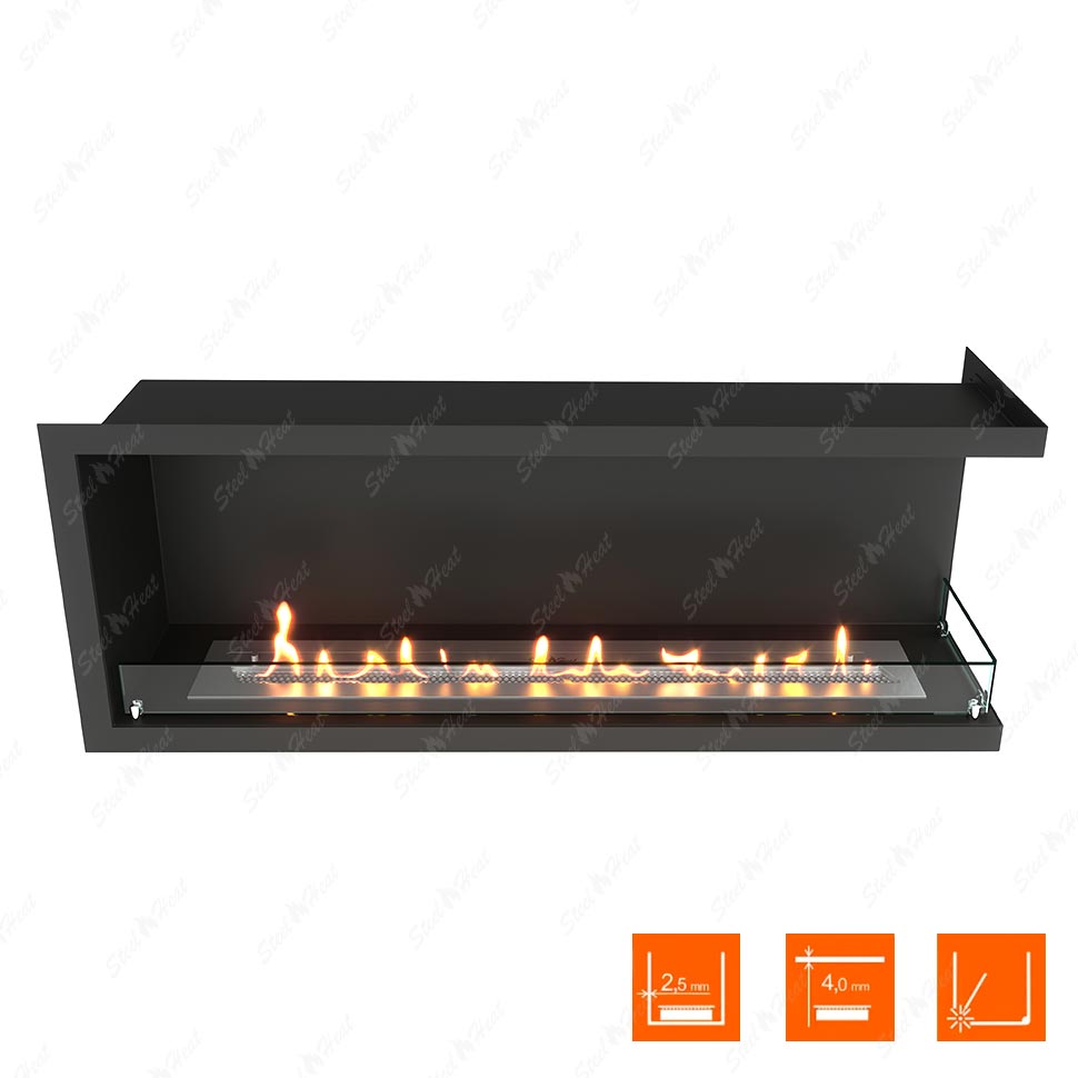 Встраиваемый Биокамин угловой SteelHeat Leader 1200 правый предназначен для встраивания в глухие ниши из гипсокартона, кирпича, пеноблоков, бетона.